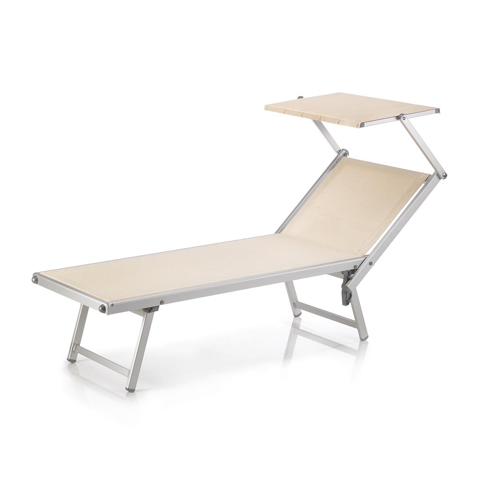 Le transat professionnel Standard, adapté aux personnes à mobilité réduite, offre un confort optimal avec ses 3 positions et son cordon. Structure en aluminium, toile PVC résistante, quincaillerie inox AISI 316. Disponible avec ou sans pare-soleil. Empilable pour un encombrement minimal en hiver.